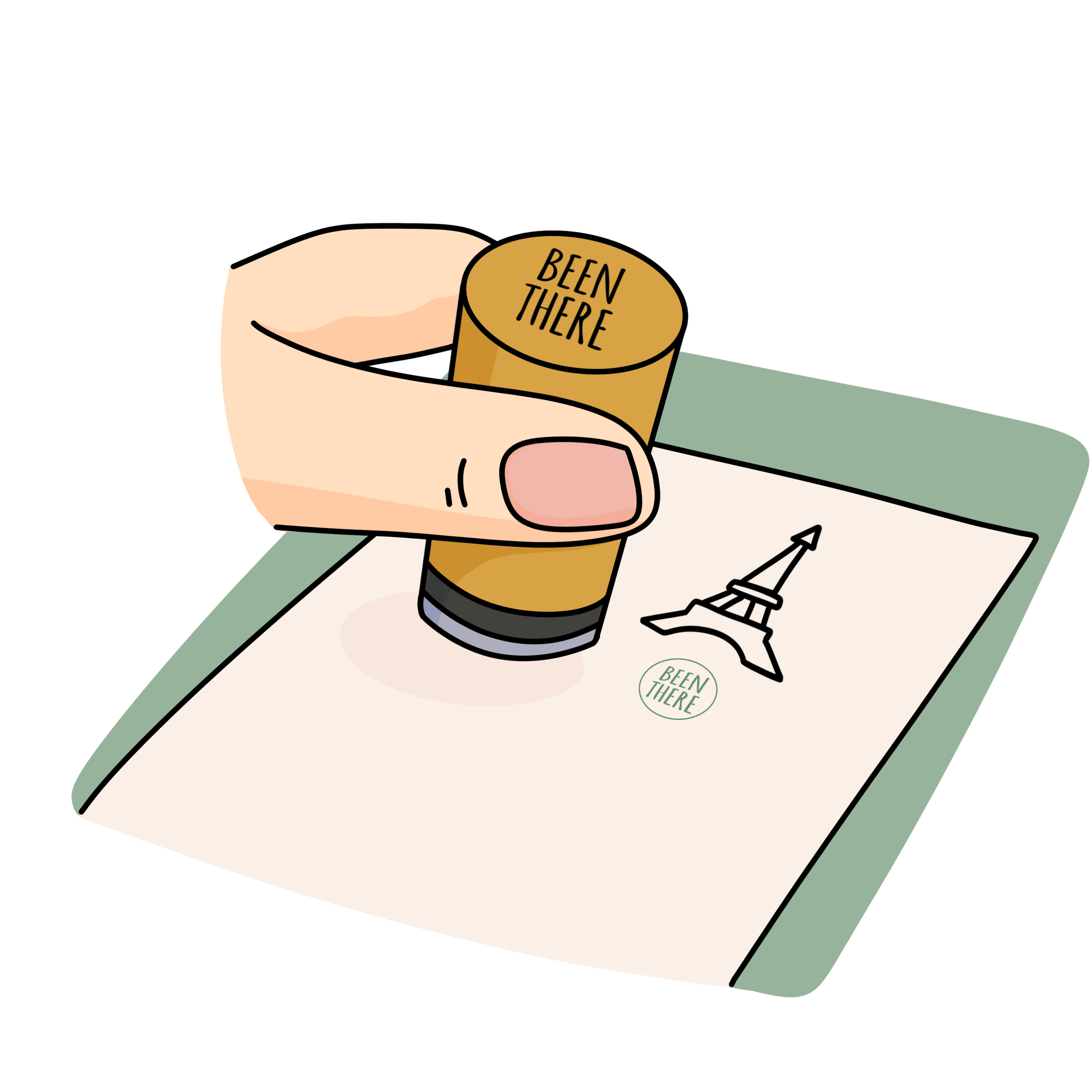 3. Toppen av stämpeln med texten “BEEN THERE” visar hur stämpeln ska vändas när du sätter den på postern